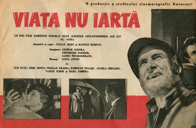 Punctul de plecare al filmului Viața nu iartă erau câteva nuvele de Alexandru Sahia, un scriitor agreat în epocă: „Întoarcerea tatei din război”, „Moartea tânărului cu termen redus” și „Pe câmpia de sânge a Mărășeștilor”. Se părea, așadar, că filmul, intrat în producție în vara lui 1956, va avea „drum deschis”, cei doi regizori tocmai terminaseră un film de succes și aveau lângă ei un cuplu de operatori prestigioși, George Cornea și Alexandru Întorsureanu. Dar premisele favorabile n-au fost suficiente, filmul a avut de înfruntat serii întregi de amânări și „refaceri”, a stat blocat de cenzură luni de zile. Ridica probleme și filmul – prin formula lui novatoare, experimentalistă –, ridicau probleme și autorii: la o conferință a cineaștilor, debutantul Iulian Mihu a fost admonestat cu vehemență pentru opiniile sale „recalcitrante”.- Călin Căliman